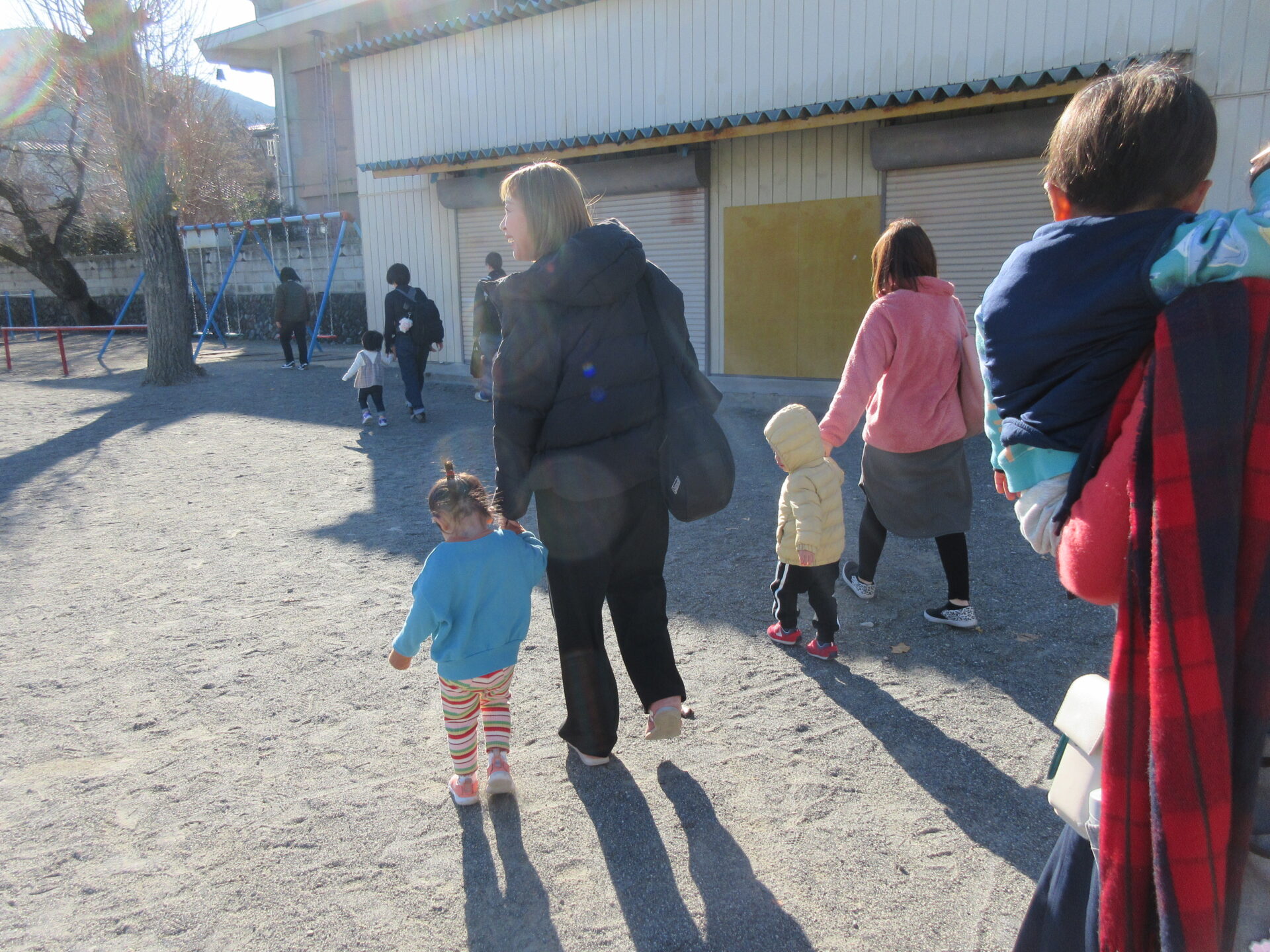 12月17日(水)保育園の観劇会に参加させてもらいました。きらきらクラブから歩いて明星保育園のホールへ…ママとおててをつないでお散歩♡