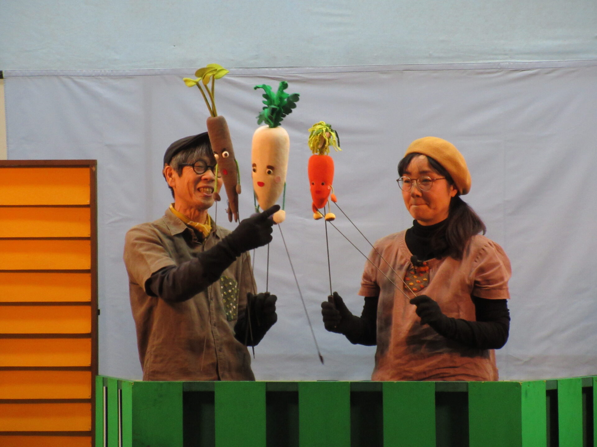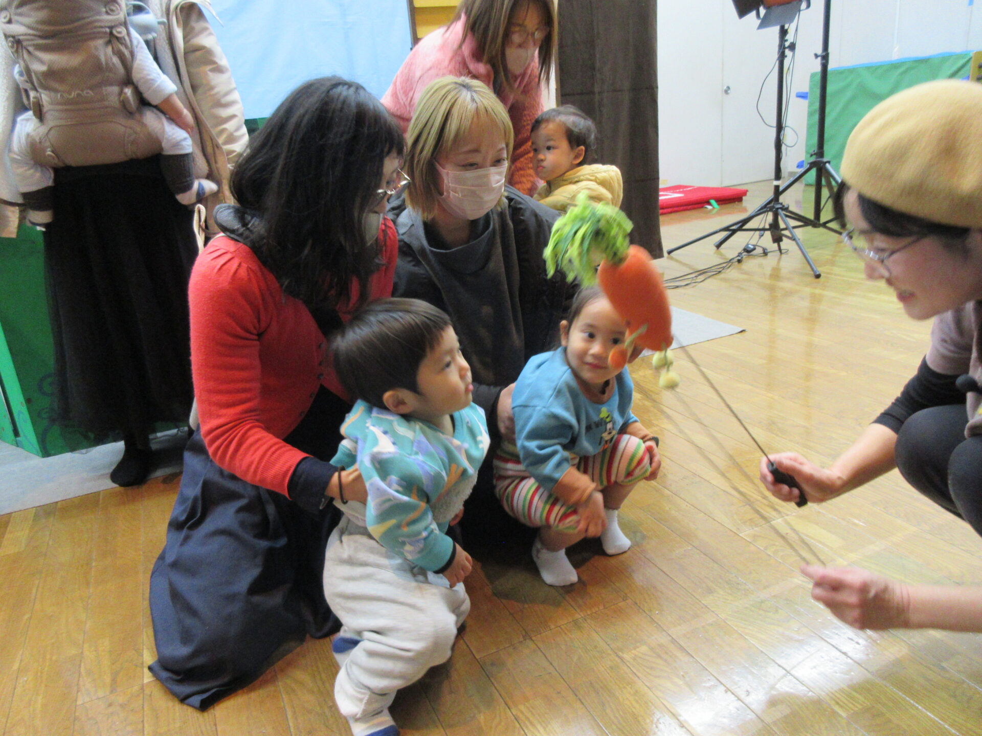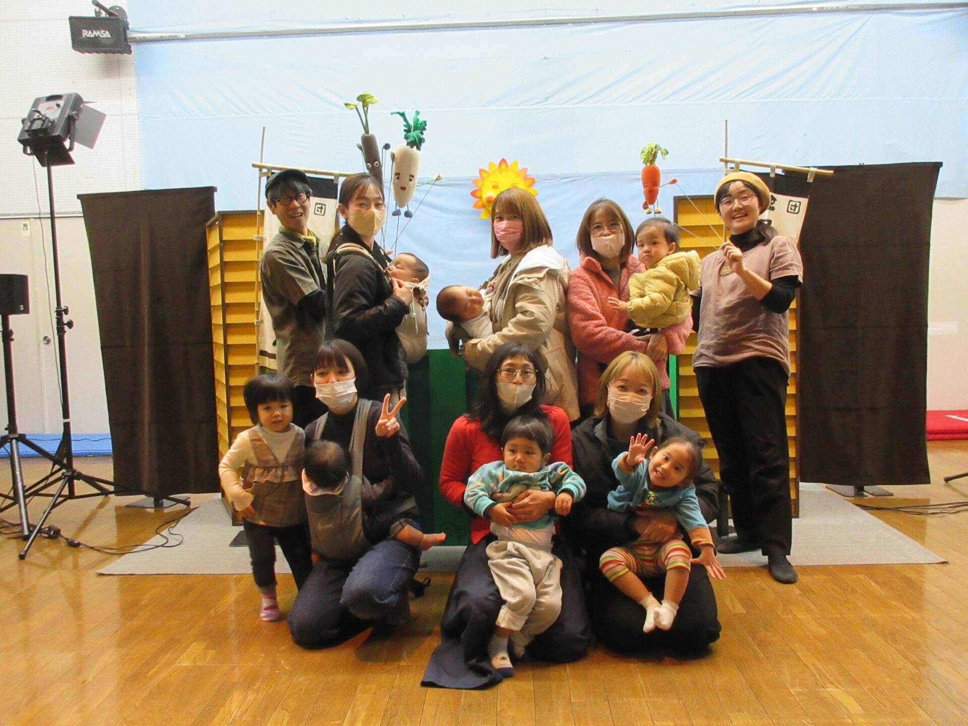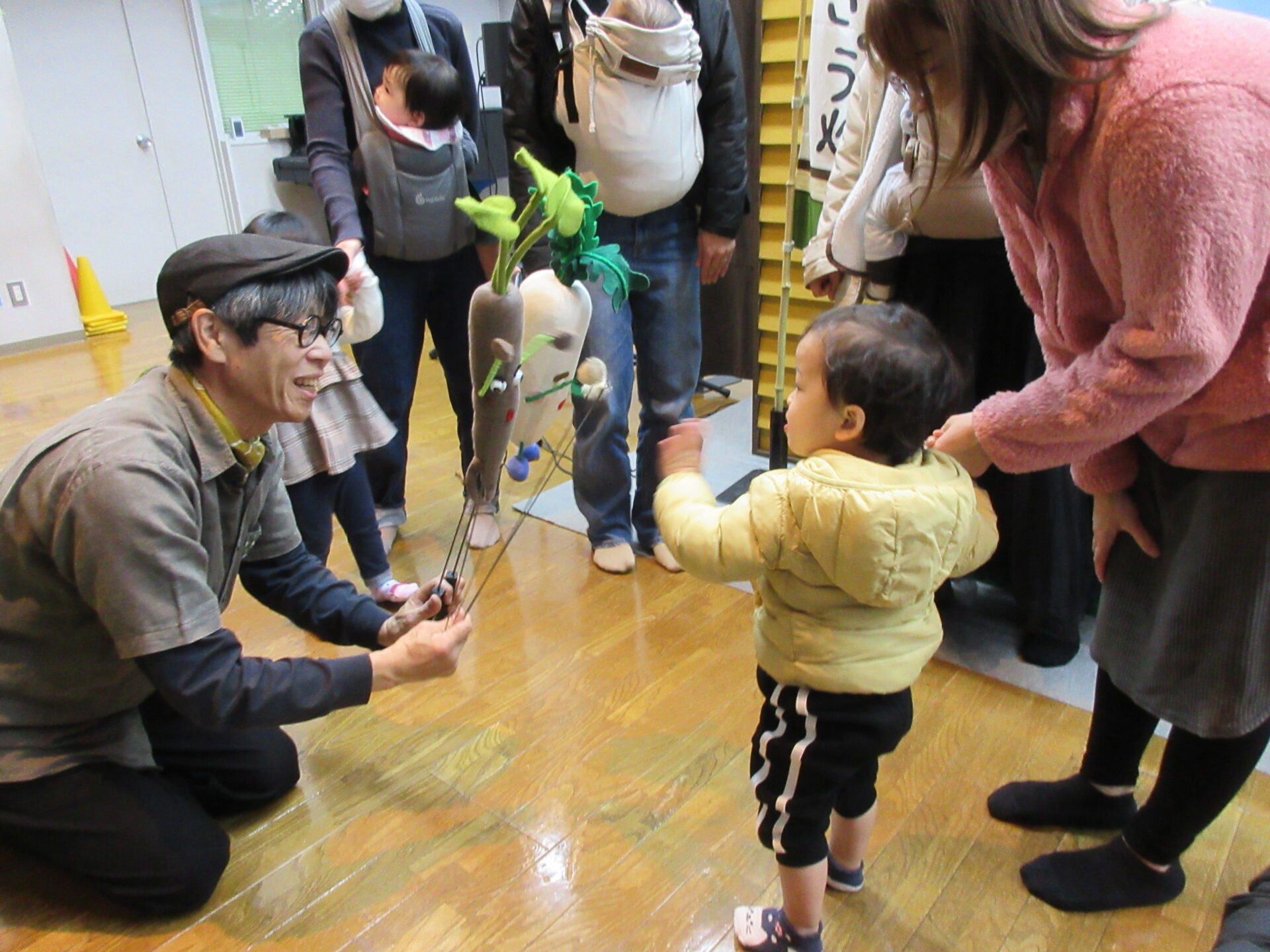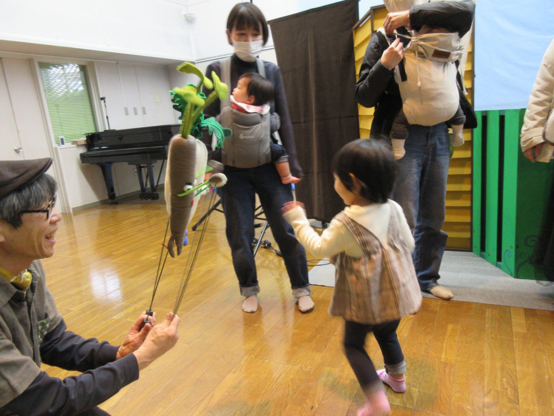 「かかしのぼうけん」「わらべうたあそび」「だいこんさんにんじんちゃんごぼうくん」の人形劇を観劇しました。保育園のお友達と一緒に楽しい時間が過ごせましたね✨